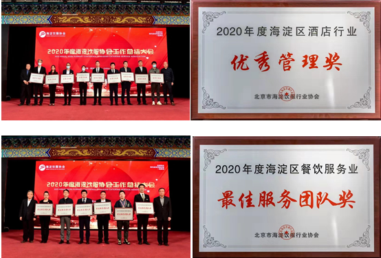 4月29日,稻香湖景酒店參加了北京市海淀飲服行業(yè)協(xié)會(huì)2020年度工作總結(jié)大會(huì),并被海淀飲服協(xié)會(huì)授予了2020年度海淀區(qū)酒店行業(yè)“優(yōu)秀管理獎(jiǎng)”和2020年度海淀區(qū)餐飲服務(wù)業(yè)“最佳服務(wù)團(tuán)隊(duì)獎(jiǎng)”雙項(xiàng)榮譽(yù)。